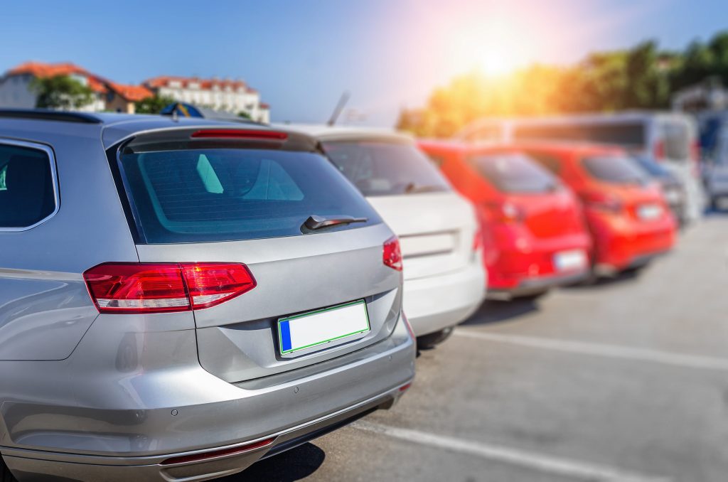 Cars in the city parking on sunset.